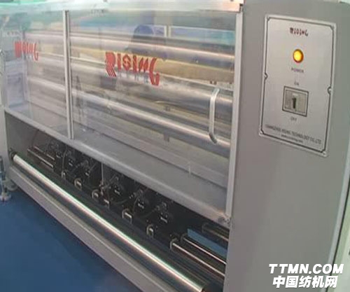 在展臺,我們看到的這款機器是常州瑞昇科技有限公司自出研發的高技術產品。該產品可根據客戶特殊復雜的面料要求,進行專門設計、配置,達到特殊面料及普通面料的整緯目的。適應車數達到每分鐘5——12米,大大提高了工作效率。輥面長度達到了1800—2400mm,增大了輥面面積。同時采用電腦控制交流變頻,自動化程度高。