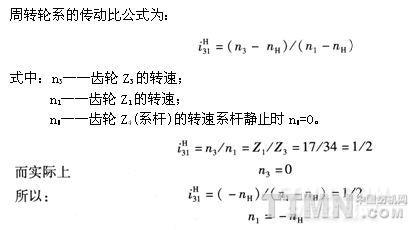 在絞邊齒輪Z4轉動并使行星齒輪Z1、Z1′公轉時,行星齒輪又被太陽齒輪Z3傳動而自轉。