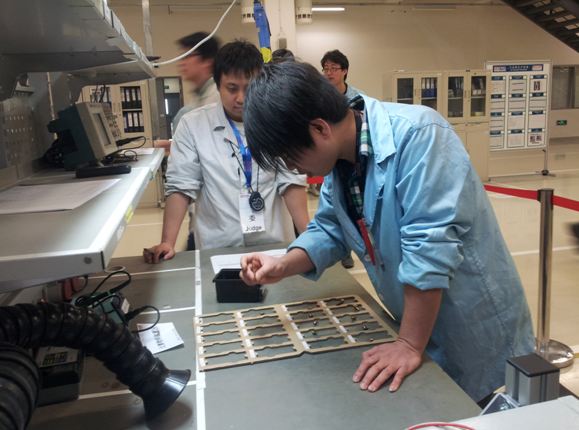 隨著裁判計時,比賽正式開始。作為參觀者,我們首先來到了團隊變頻器組裝賽區,只見三個穿著靜電服的員工站在變頻器組裝生產線上,依次專業嫻熟的組裝者各種零配件。幾分鐘時間,原來看似毫無關聯的零配件經過嚴密的組合就變成了一臺結構緊湊外形美觀的變頻器。接著我們又去了認螺釘競賽專區,只見參賽者們從盒中拿出大小不一的螺釘并迅速分辨型號把它們放到正確的位置,其速度之快、準確率之高讓我們由衷地敬佩。