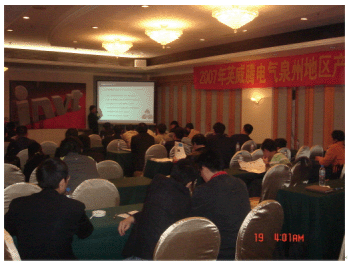 2007年1月19日,我公司在福建泉州地區成功舉辦產品推廣會,吸引了來自磚機行業的眾多商家紛擁前來。他們認真聽取了技術人員的講解,并通過實樣機型參觀、技術功能演示等方式,對我公司的變頻器表示了濃厚興趣。     此次推廣會主要由泉州辦事處籌辦,重點輻射所在市場區域的磚機客戶群體。會上展示推出了我公司CHE系列磚機專用矢量變頻器,公司副總經理及華南大區總監均前往現場指導。