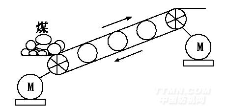 皮帶機是現代化煤礦高產高效的主要運輸設備,皮帶機的拖動技術形式多樣,直接啟動、調速型液力偶合器、軟啟動、交流變頻拖動等多種形式。皮帶機示意圖如下: