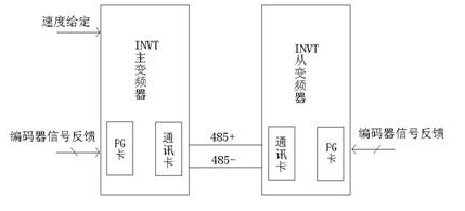 方案三:通過通訊方式實現給定速度的同步控制,框圖如下: