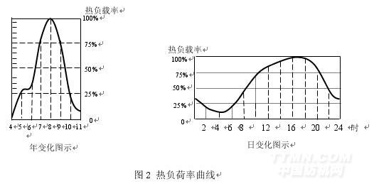 在中央空調(diào)系統(tǒng)設計時,冷凍泵、冷卻泵的電機容量是根據(jù)建筑物的最大設計熱負荷選定的,都留有一定設計余量。由于四季氣候及晝夜溫差變化,中央空調(diào)工作時的熱負荷總是不斷變化。下圖2為一民用建筑物的平均熱負荷情況: