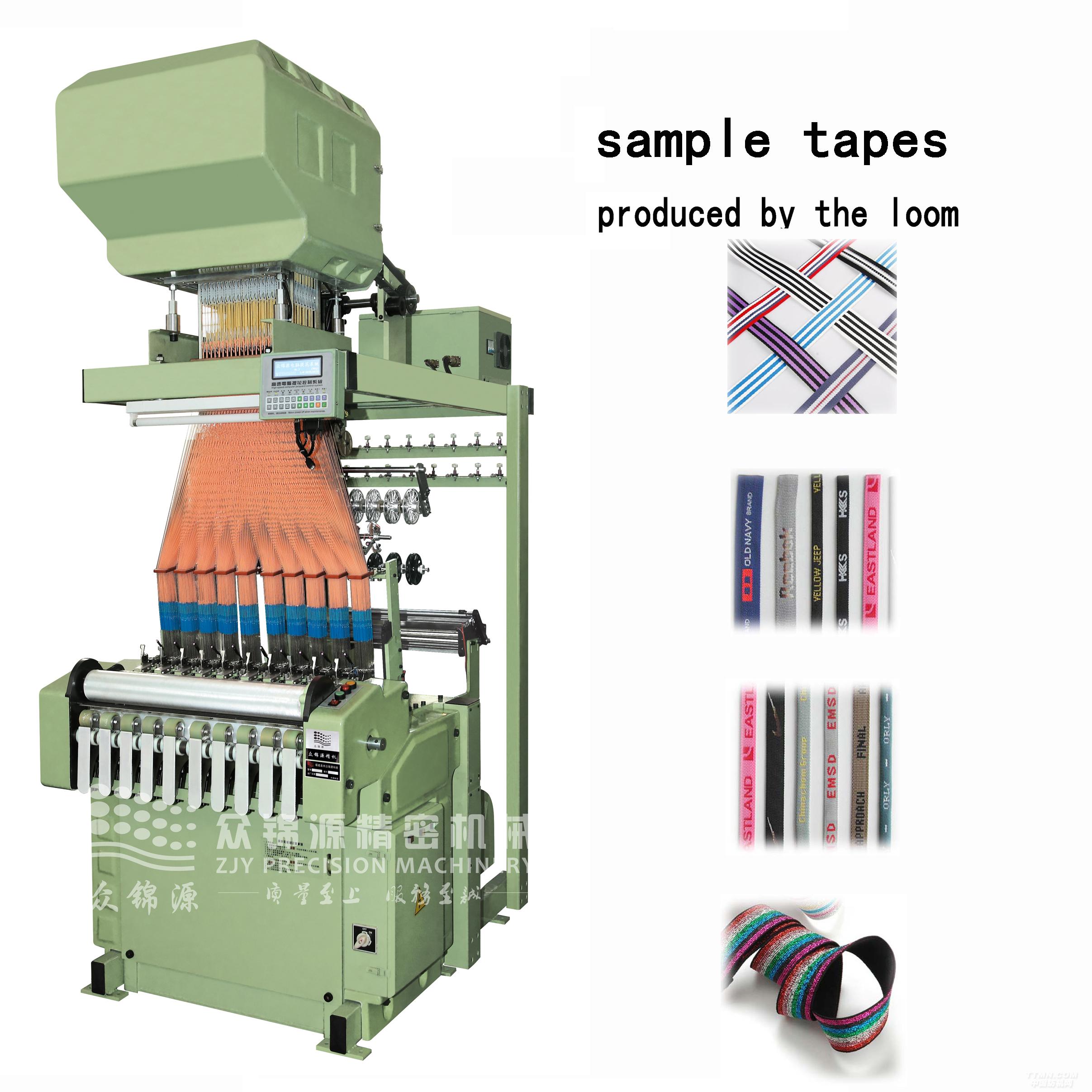 泉州眾錦源A型240針電腦提花機機械部分提花機采用凸輪提臂式結構,運作平穩、噪音低,各活動部件均有潤滑裝置,性能更可靠,保養維護方便。全清晰開口,開口大,更有利于織口的形成,織帶的帶邊更美觀。采用中立柱機架、開放式送緯裝置,結構更合理、美觀,為操作人員提供更大的工作空間,工作效率更高。織帶條數多,產量高,經濟效益突出。