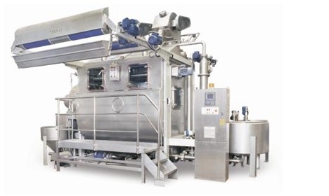 織物運行借助于含有濕氣或水蒸氣混合的分流氣體而循環, 所以織物運行無需噴射液體或帶液通道。 從裝載到批次結束, 甚至是在排水和注水過程中, 織物完全處于運行狀態。