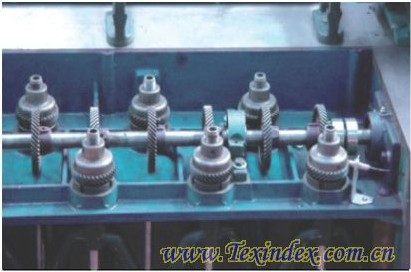 錠翼卷繞部分可采用斜齒輪轉動。齒輪均經(jīng)過銻齒加工,傳動平穩(wěn),運轉速度高、噪聲低。