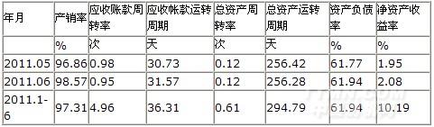 從產(chǎn)銷銜接情況看,2011年1-6月份紡織機(jī)械行業(yè)產(chǎn)銷率為97.31%,表明該行業(yè)產(chǎn)品銷售狀況較好;應(yīng)收賬款周轉(zhuǎn)率(主營收入/應(yīng)收賬款凈額)為4.96次;應(yīng)收賬款運(yùn)轉(zhuǎn)周期(180天/應(yīng)收賬款周轉(zhuǎn)率)為36.31天,應(yīng)收賬款周轉(zhuǎn)次數(shù)越多,或者應(yīng)收賬款周轉(zhuǎn)天數(shù)越少,表明其實(shí)現(xiàn)利潤的通道越加通暢。