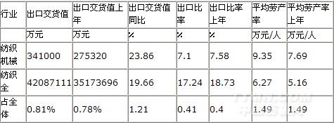 紡織機(jī)械行業(yè)產(chǎn)品出口交貨值和勞動(dòng)生產(chǎn)率水平