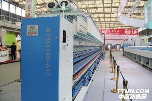 此次東飛馬佐里紡機有限公司有三臺展機參展,其中DTMl49—1200緊密紡長車型高速集體落紗細紗機和DTMl29—612賽絡緊密紡短車型高速集體落紗細紗機,現場演示的品種為TC65/35緊密紡50支,最高工藝紡紗錠速為25000轉/分,平均紡紗工藝錠速為23216轉/分。這次參展的新型紡機是在全面優化機械結構設計的基礎上,結合了應用模塊化、設計系統化、控制智能化等最新研發成果,采用公司自主研發創新的東飛牽伸系統,幫助用戶成功實現了紡紗效益最大化的夢想,迎合了紡織行業轉型升級的渴求,順應了節能、省工、高效的發展方向,并解決了紡織企業提高生產率、提升產品品質、細紗工序減員的關鍵癥結。