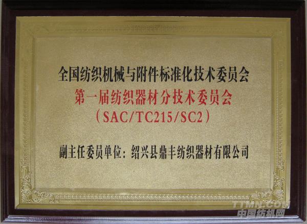 熱烈慶祝紹興縣鼎豐紡織器材有限公司榮獲“全國紡織機械與附件標準化技術委員會副主任委員單位”稱號!