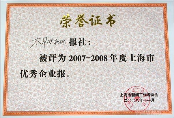 紀念第九屆中國記者節(jié)暨2008年度優(yōu)秀企業(yè)報表彰大會舉行 太平洋機電報蟬聯(lián)“上海市優(yōu)秀企業(yè)報”