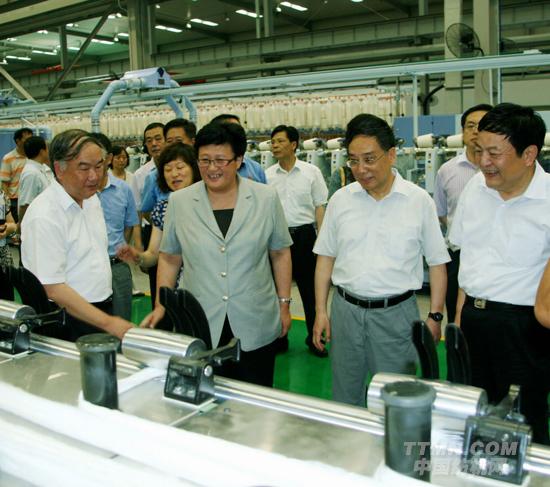 上海寶山區(qū)區(qū)長汪泓(右三)考察太平洋機(jī)電寶山紡機(jī)制造基地