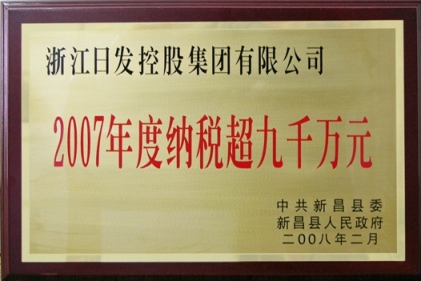 日發(fā)控股集團(tuán)2007年度納稅超九千萬(wàn)元集團(tuán)總裁吳捷先生榮獲“新昌縣經(jīng)濟(jì)發(fā)展優(yōu)秀人才”稱號(hào)