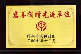 日發控股集團被紹興市人民政府授予2007年度“慈善捐贈先進單位”榮譽稱號