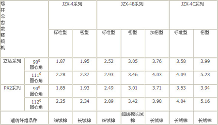 表1為立達和PX2系列精梳機配套錫林的總齒數見表1: