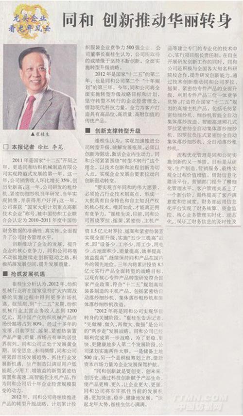 同和 創(chuàng)新推動(dòng)華麗轉(zhuǎn)身---中國(guó)紡織報(bào)2...