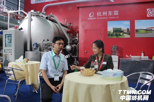 2014年中國國際紡織機械展覽會暨ITMA亞洲展覽會上,杭州東霖推出高端節能產品,吸引了不少國內外客戶的注意。為了更加清楚地了解東霖此次產品亮點和優勢,中國紡機網記者到其展臺對杭州東霖染整機械有限公司總經理陳信宏進行了訪談。