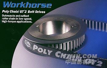 伍德福Poly Chain第二代-Poly Chain GT2 Poly Chain GT2傳動系統保證在性能及動力超滾子鍊條(Rollor Chain)及其它高性能同步皮帶系統-以長期使用所需的費用比較,其所需成本較低 。Poly Chain GT2是Gates最新及最強的同步皮帶,專為需高扭力、低轉速之工業而設計。在相同的空間情況下,最新的輕量型Poly Chain® GT2傳動功能方面是比Poly Chain GT約增強30%,且在同一功率要求之下可漢足更緊密,更巧的傳動設計。它無需經常調整張力及潤滑保養,所以是替代滾子鏈條(Roller Chain)的最佳產品。對市場要求傳動力的增加方面,Gates革新及先進技術專利的Poly Chain GT2就是最好的供應。與傳統皮帶的傳動系統比較,Poly Chain GT2可以提升空間緊密75%的設計,并增強8倍的動力,而重量更可減少60%。在原來齒輪上,Poly Chain GT2可完全代替原有PolyChainGT2傳動系統而不需任何調整。
