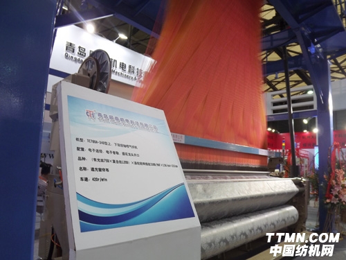 本次展會上,青島同春機電科技除了以新產品、新技術博人眼球外,還特地推出“高性價比”產品TC730A-DT電子大提花噴氣織機。該機配置我國最先進的電子提花機,擁有18項專利技術,利用計算機仿真技術,模擬機臺的織造過程,在計算機上展現織物的表面真實效果。是目前市場的主流產品。