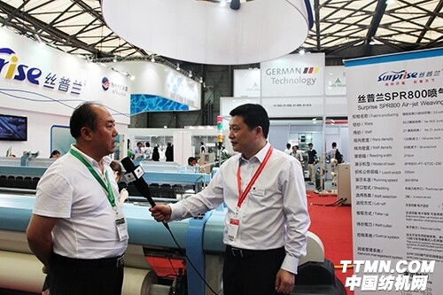 為了讓更多的人認識到絲普蘭本次新產品的優越性,無錫絲普蘭噴氣織機制造有限公司董事長丁超英受邀參加了中國紡機網在本次展會期間進行的高端訪談。