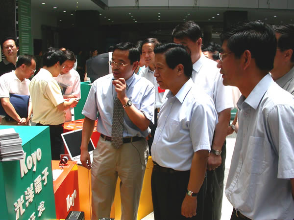 2005年7月19日江蘇省省委書記李源潮、省長梁保華等視察光洋電子(無錫)有限公司新產品