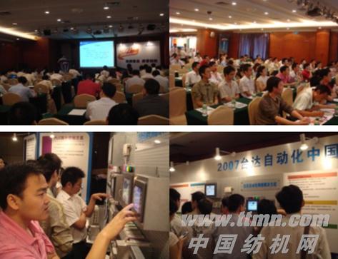 會議現場,各種系統和應用方案的展示是此次活動的亮點,臺達電子集團在華子公司——中達電通作為一體化集成方案提供商,在機械、紡織、包裝、印染、電梯、機床、食品、包裝、化工和能源等領域已享有良好的聲譽。此次巡展,中達電通也展出了采用DeviceNet總線高速數據傳輸控制系統、精紗機的多變頻比例同步控制系統、封切機高級同步控制系統、車銑床專用控制系統等多款的動態展示。來自中達電通的高級工程師也親臨現場,令來賓們零距離了解到中達電通的集成方案在各種行業的廣泛應用。
