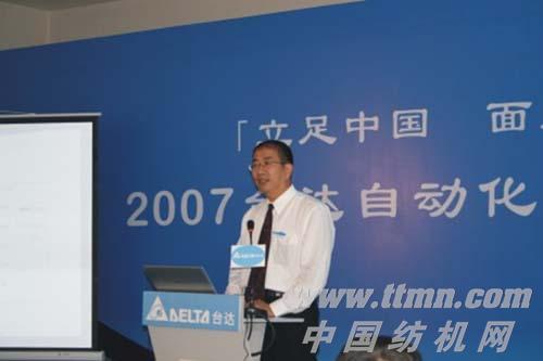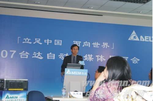 會議現場,中達電通總經理王其鑫先生向大家介紹了臺達集團以及臺達在中國的發展狀況:“中國自動化市場聚集了世界各地的知名品牌,與全球的眾多知名品牌相比,臺達集團在自動化行業屬后起之秀。一九九六年,臺達集團開始了機電自動化產品的研發。如今提供的產品已涵蓋drive、motion、control三大領域,并在短短幾年中躍居行業領先,得到了廣大用戶的交口稱譽。”