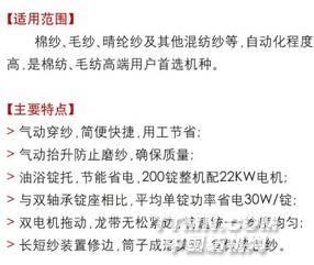 企業(yè)創(chuàng)立至今,產(chǎn)品遍及國內(nèi)各大城市的紡織企業(yè)。其中,化纖倍捻機(jī)已銷售400萬錠,氣動(dòng)穿紗短纖倍捻機(jī)也以其節(jié)能高效,穩(wěn)定方便的優(yōu)勢(shì)為國內(nèi)眾多知名棉紡企業(yè)批量采用。