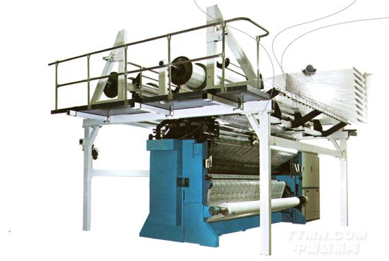 機前賈卡梳僅做橫移不做擺動,壓紗板做上下運動,機后地梳既做橫移又做擺動。該機主要用來生產網眼窗簾、臺布、服裝網眼和圍巾等。