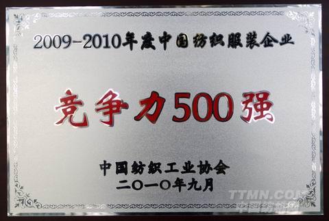 2010年9月19日,“2009~2010年度中國紡織服裝企業競爭力500強發布會” 在浙江海寧海洲大酒店隆重舉行,陜西寶成航空精密制造股份有限公司獲得了中國紡織服裝企業競爭力500強企業的殊榮,公司董事長賀武銀受邀出席了此次大會并代表公司接受了頒獎。