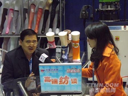 (圖為上海中加高樂斯針織公司的孫總在接受紡機網的記者采訪 中國紡機網攝)