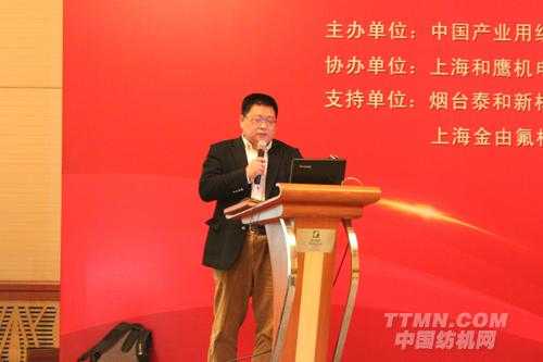 下午和鷹科技董事長尹智勇作了題為《產業用紡織品行業柔性材料的裁剪技術與應用》的技術報告。尹董事長向與會代表介紹了和鷹科技在產業用紡織品裁剪領域中最新研發的技術和產品。