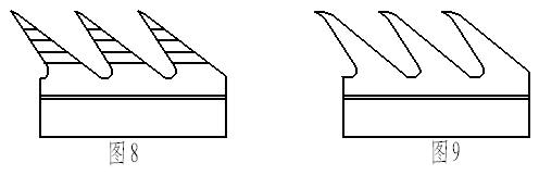 (1)總高h1、齒深h6:齒深的大小直接關系到齒間容量的大小及分梳、均勻混合和轉移等作用的好壞。采用矮齒、淺齒,使纖維處于齒尖,與另一針面(蓋板、道夫)的接觸長度和作用齒數增加,錫林與蓋板交替作用增加,利于分梳、轉移,對減少棉結有利,解決了小工作角針布的轉移問題,也為增加齒密、增大前角創造了條件。h6小,減少纖維充塞,抗軋性能好,氣流產生弱,從而減少氣流外溢。但h6不能太小,否則貯存纖維量少,影響均勻混合作用。