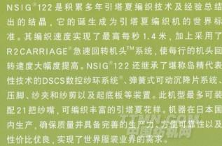 NSIG122是積累多年引夏塔編織技術及經驗總結出的結晶,他的誕生成為引夏塔編織機的世界標準。
