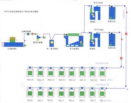 異纖分檢機在清梳聯生產線上的安裝示意圖