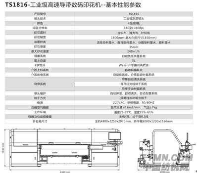 TS1816工業級高速導帶數碼印花機基本性能技術參數