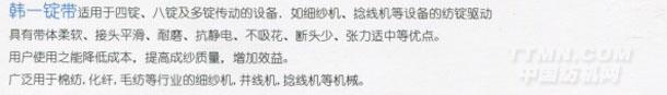 韓一錠帶 降低生產(chǎn)成本增加用戶效益