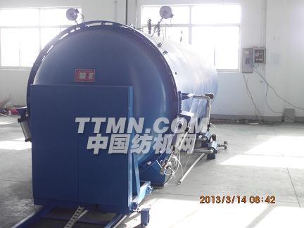 對于強捻度的紗線,采用“蒸箱”定型顯得更為重要。精紡羊絨針織制品的開發過程中一直面臨著許多的問題,雞爪痕就是長期以來精紡超輕薄羊絨衫開發的難題之一。考慮到蒸紗能有效地消除紗線內應力進而緩解雞爪痕問題,因此,將精紡針織紗線在蒸紗過程中的主要參數通過正交試驗的方式,來尋找最佳的蒸紗工藝,以最大程度地減輕雞爪痕出現的程度。試驗顯示在不影響蒸紗后紗線強力和后期服用性能的前提下應盡可能地增大蒸紗溫度,延長蒸紗時間。對于14.70tex紗線來說,蒸紗溫度不低于85,蒸紗時間不少于30min..KZX系列電蒸箱是以KSZX系列產品為基礎并吸收國外同類產品的精華而研制的新型自動真空蒸紗設備,具有全自動化控制,生產效率高、干濕兩用等優點。成為目前理想的給濕定型設備。廣泛適用于以棉、麻、毛、真絲、化纖等為原料的紡織單位,其用途是將具備織造條件的絲線在合并加捻后進行給濕定型,即在多次真空和一定溫度范圍下增加濕度,降低紗線伸縮率,改善產品手感、光澤度,提高紗線張力、強度,同時消除靜電及各部分的不平衡應力。該蒸箱的使用特點是:適用范圍廣泛,定型后產品的物理性能如:強力、伸長度等不受影響,同時使針織效率提高10%;整經、織造效率提高15%;又使染色布均勻,還可以降低失重率。