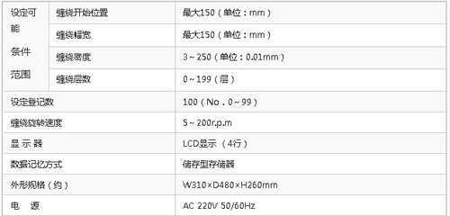 本機是以安定的測色和樣品作成迅速化為目的所開發的「紗線纏繞器」。根據「卷曲開始位置」「卷曲幅寬」「卷曲密度」「卷曲層數」的變更,紗線在臺紙上可均一或層狀纏繞。纏繞控制程序最大可儲存100種類,對于已存儲的紗線纏繞條件,下次纏繞時只需將存儲條件調出就可進行。