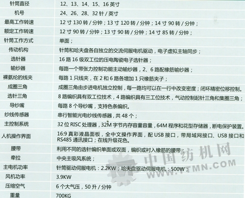 盈泰(SmartPro ES)16選針器無縫內衣針織機技術參數: