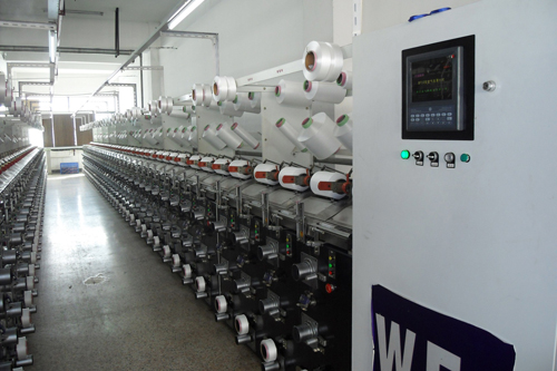 包紗機(jī)用來(lái)生產(chǎn)氨綸包覆紗、橡筋包覆紗;空包機(jī)用來(lái)生產(chǎn)空氣包覆紗,線速度800米/分鐘,單錠單控;精密倒筒機(jī)高速恒張力倒筒包覆紗。