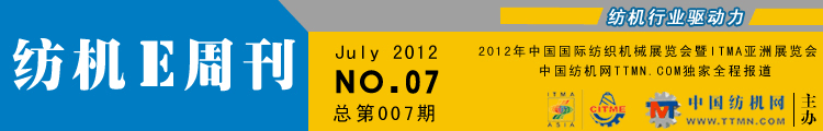 萬眾矚目的2012中國國際紡織機械展覽會暨ITMA亞洲展覽會已圓滿落下帷幕!中國 紡機網作為本次展會唯一參展的網絡媒體全程參與并進行報道。紡機網TTMN.COM是紡機行業門戶 網站,作為這樣一家特殊的“參展商”,TTMN本著“ 全面,準確,有效”的企業宗旨,第一時間對現 場的參展商做了詳細報道。本期紡機E周刊將帶您回顧本次展會的精彩看點!