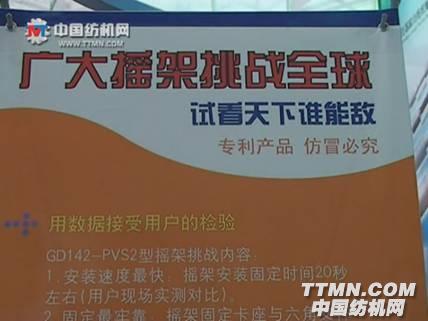 在展會現場,廣大紡機展示了廣大GD142-PVS2型氣動搖架,這款搖架是公司經過五年多時間研制,在技術上不斷創新的成果。GD1142-PVS2型氣動搖架十大優勢:1、按裝速度最快;2、固定最牢靠;3、調壓最方便;4、調壓微調范圍最大;5、平行度最高;6、前中皮輥壓力比例檔位最多;7、皮圈鉗口壓力可調;8、前沖量一致性最好;9、維護保養最方便簡單;10、加缷壓最輕巧。產品一經亮相,就吸引了不少中外客商,很多客商在現場親自動手操作,來驗證廣大氣動搖架的十大功能優勢。有許多客戶把這些真實數據記錄下來,更有一些國外代理商多次帶來國外其他廠家生產的氣動搖架,到廣大紡機展臺作對比。