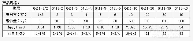 * 容紗量:以噴管內凈掛紗長度為960mm標準為5kg/管
