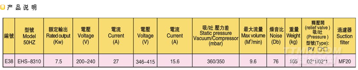 功率范圍:0.18~20KW;空氣流量: 0.8m3/min~18.9m3/min;1000mmH2O~7000mmH2O;真