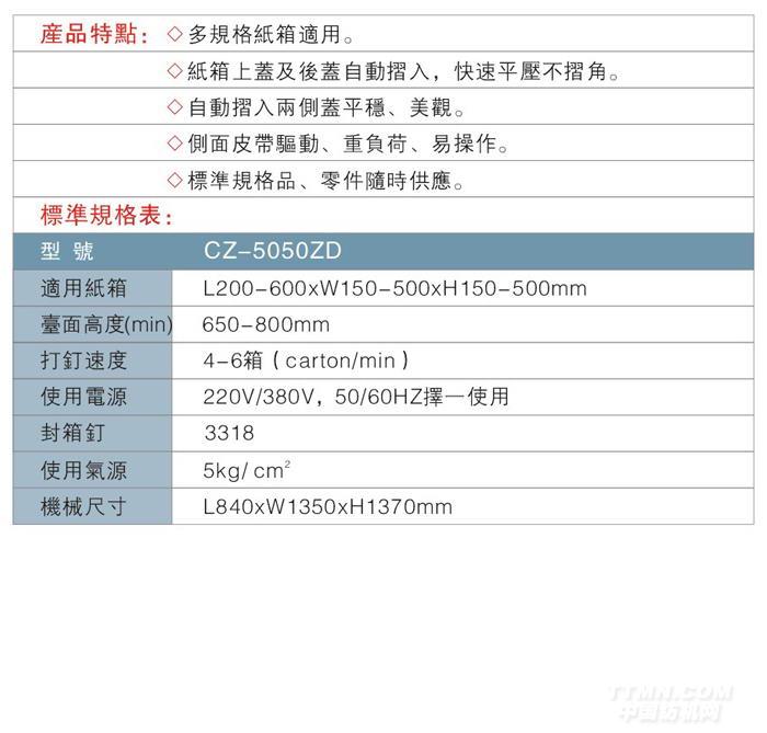 您所在的位置:紡機(jī)網(wǎng) > 產(chǎn)品庫(kù) > CZ-5050ZD半動(dòng)自折蓋打針封箱機(jī)