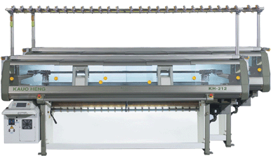 雙機頭,可合併、分離使用,具雙面提花編織、雙面雙向翻針系統編織系統三路技術。 |