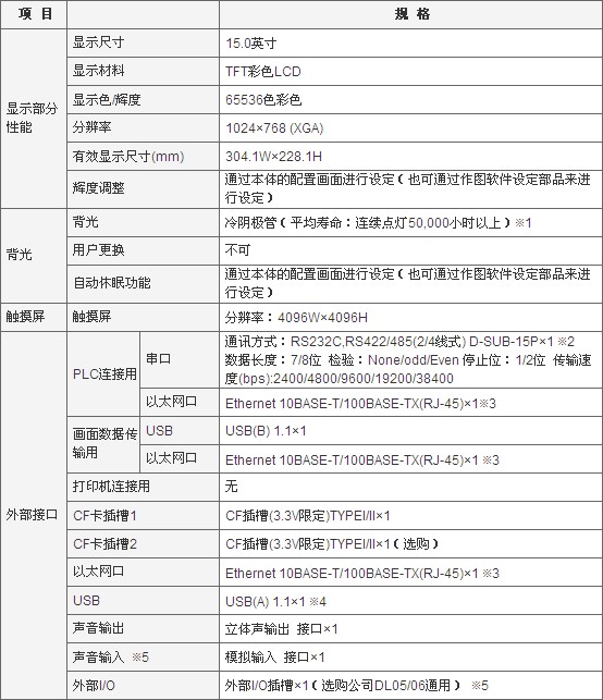 性能規格: