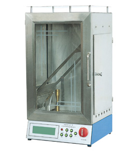 用于測定紡織物在45°狀態(tài)下的損毀面積和損毀長度及紡織品在45°狀態(tài)下受熱熔融至規(guī)定長度時接觸火焰次數(shù)。