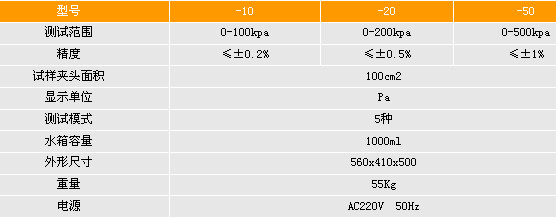 用于緊密織物,如帆布、油布、帳篷布,苫布,非織造布及防雨服裝布,涂層織物等抗滲水性能測試。